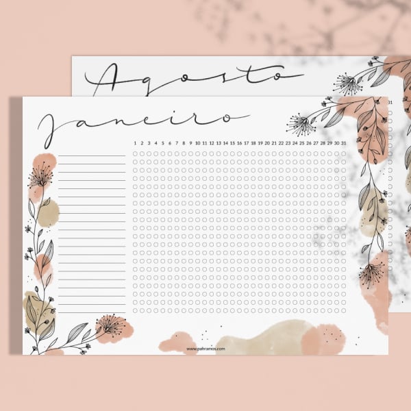Com este arquivo, você terá acesso a 12 páginas (uma para cada mês) como uma ferramenta poderosa para ajudá-lo a criar e manter hábitos saudáveis.